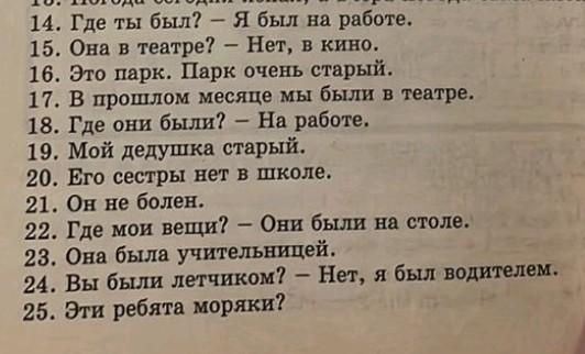 23. Она была учительницей. 24. Вы были летчиком? Нет, я был водителем.