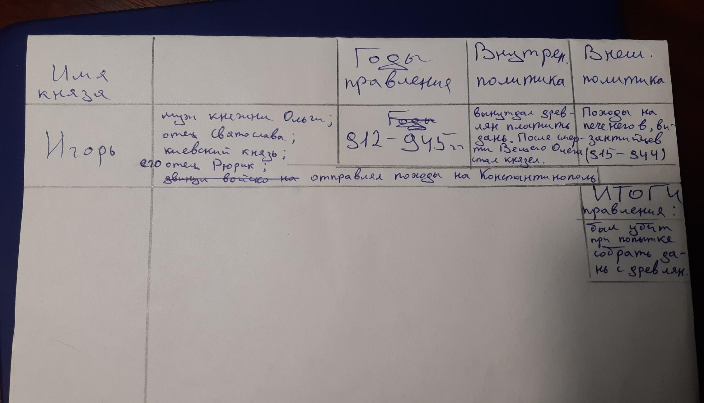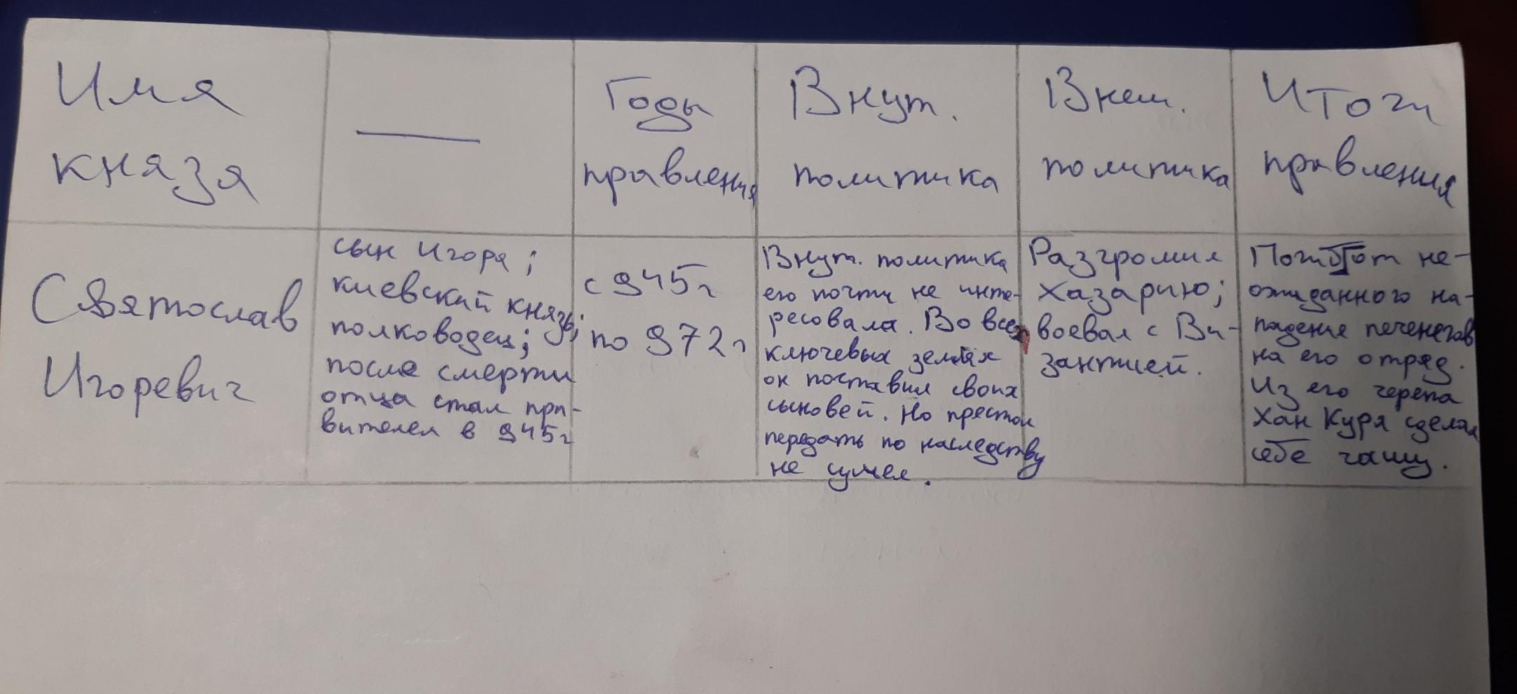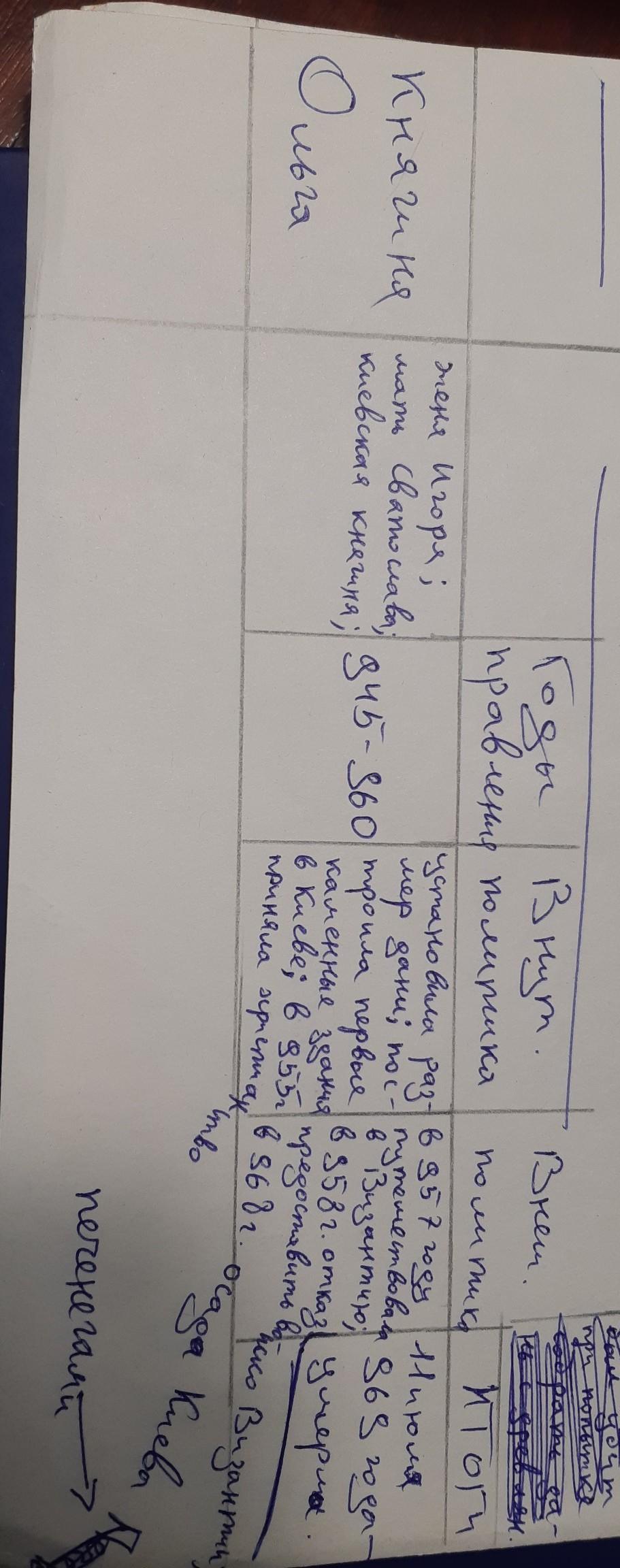 Даю 80 баллов!!!!!!! Начертить таблицу про князей: Игорь, Ольга, Святослав.