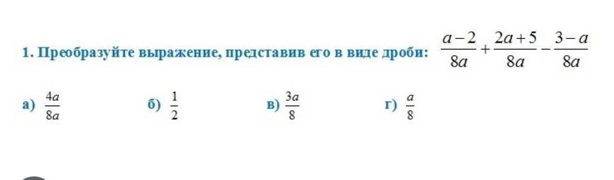(a-2+2a+5-3+a)/8a=4a/8a (мы раскрывали скобки потому у нас -3+а)