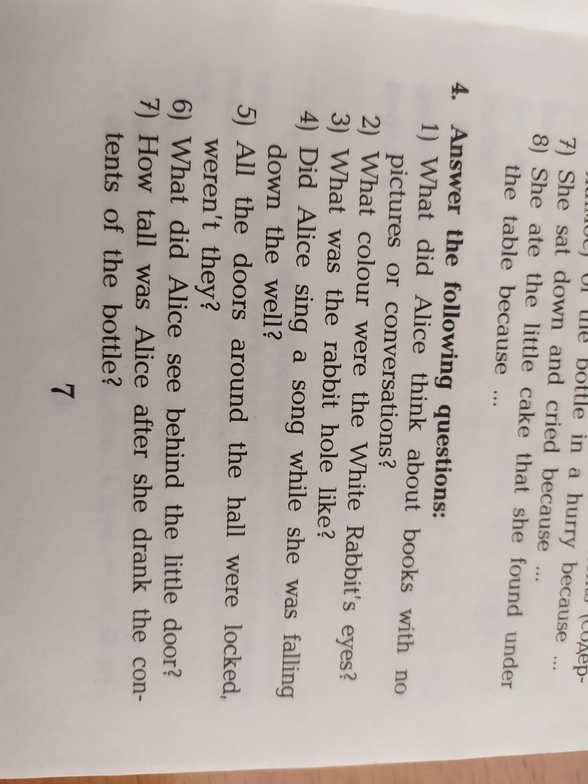 4 answer the following question 1)what did Alice think about books with no pictures or conversation