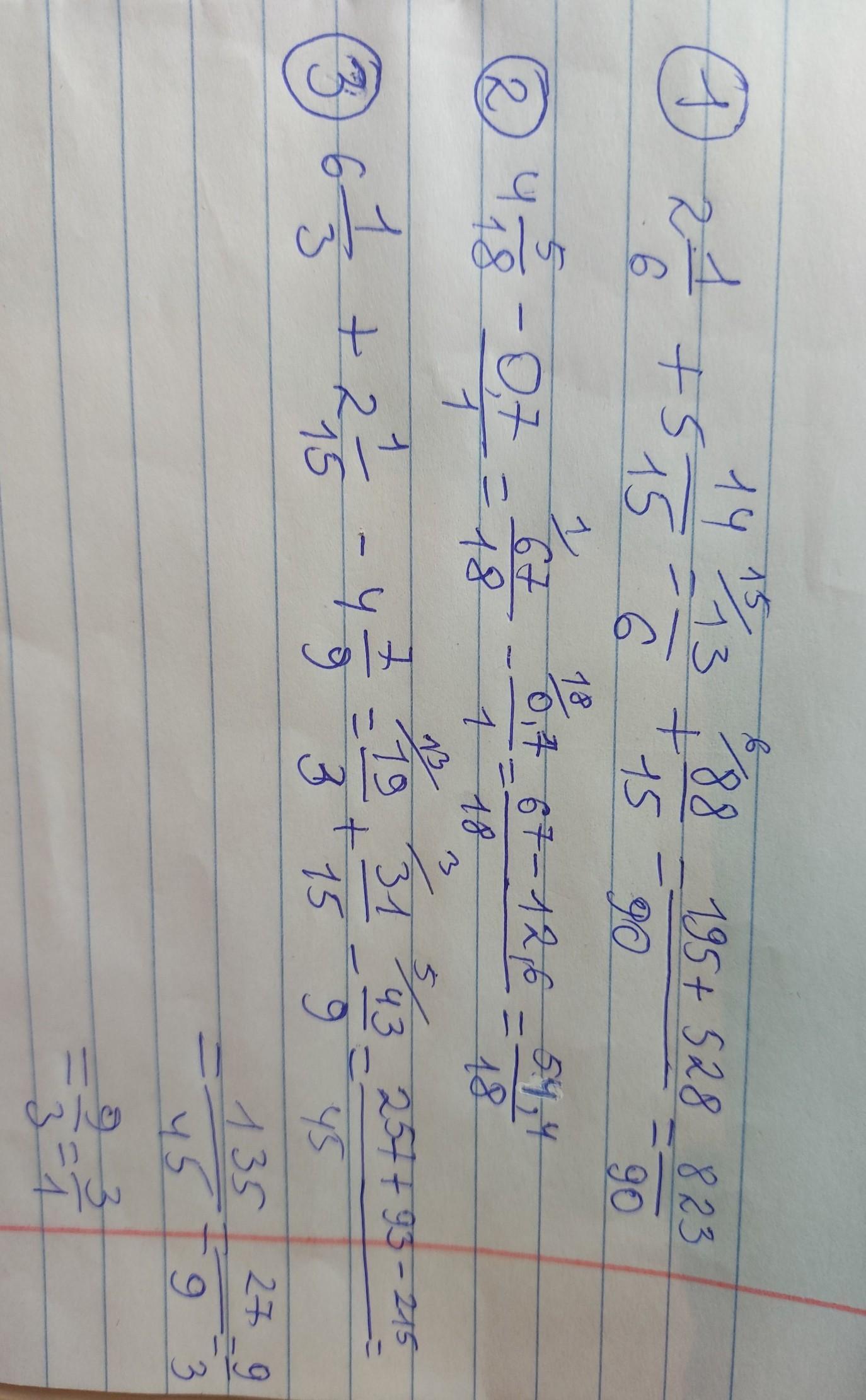 6. 1/3 + 2. 1/15 - 4. 7/9 =