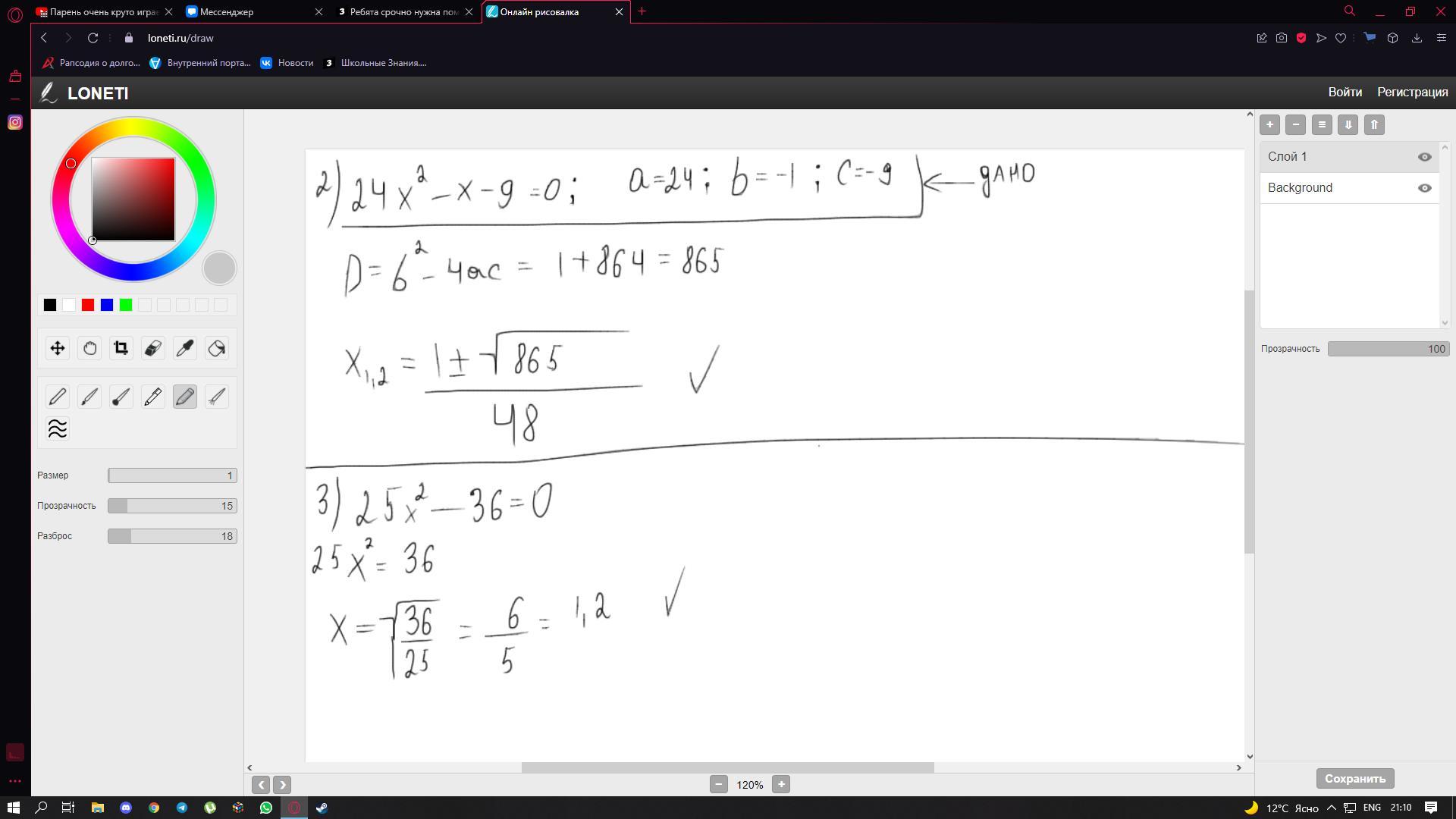 Решим через дискриминант: