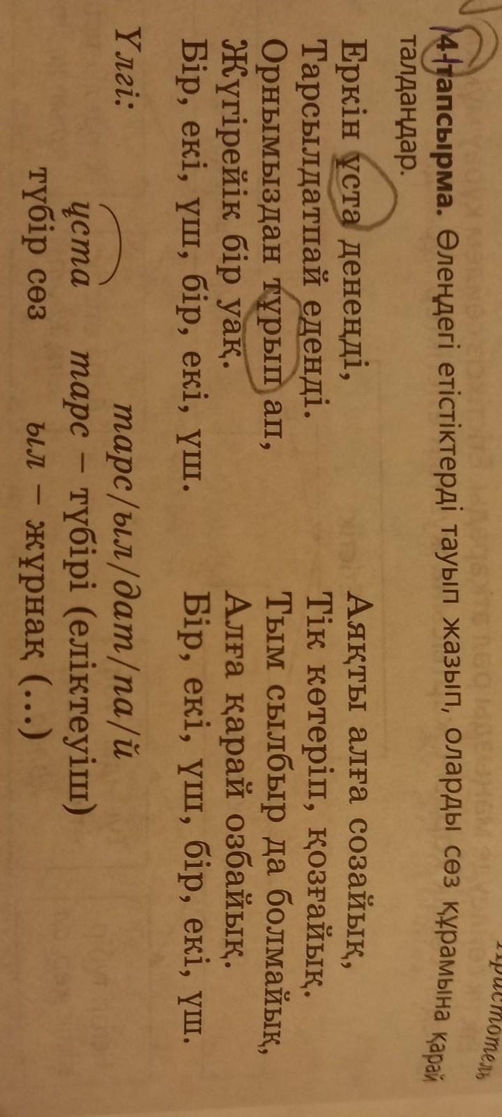 Өлеңдегі етістіктерді тауып жазып, оларды сөз құрамына қарай талдаңдар
