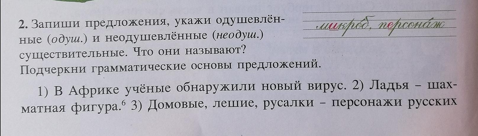 3. Домовые (одуш.)., лешие (одуш.) , русалки( одуш.), персонажи (одуш), сказок(неодуш).
