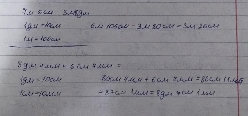 7м6см-3м8дм=3м26см=326см=3260мм