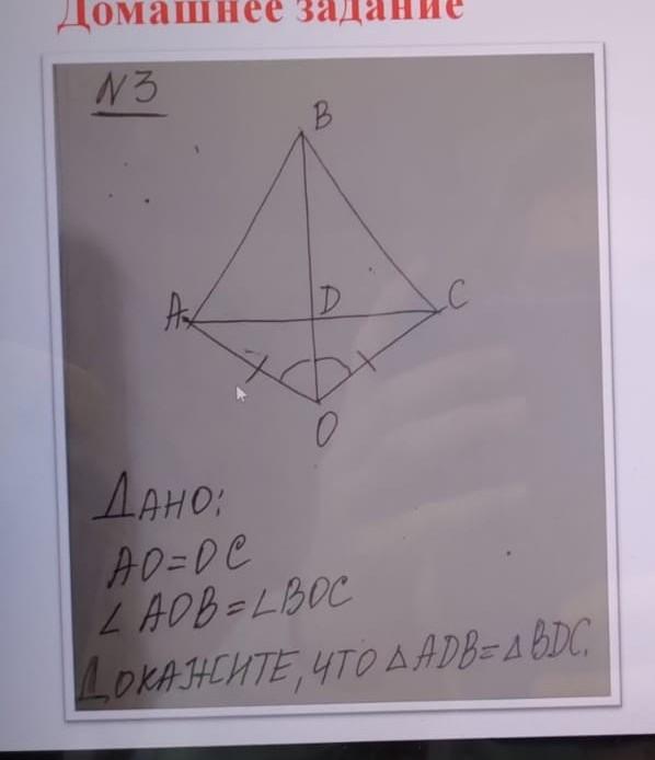 из равенства следует, что AD=CD, угол ADB=углу CDB, а из этого следует, что треугольникADB=треугольнику BDC по 1 признаку, тк сторона BD общая
