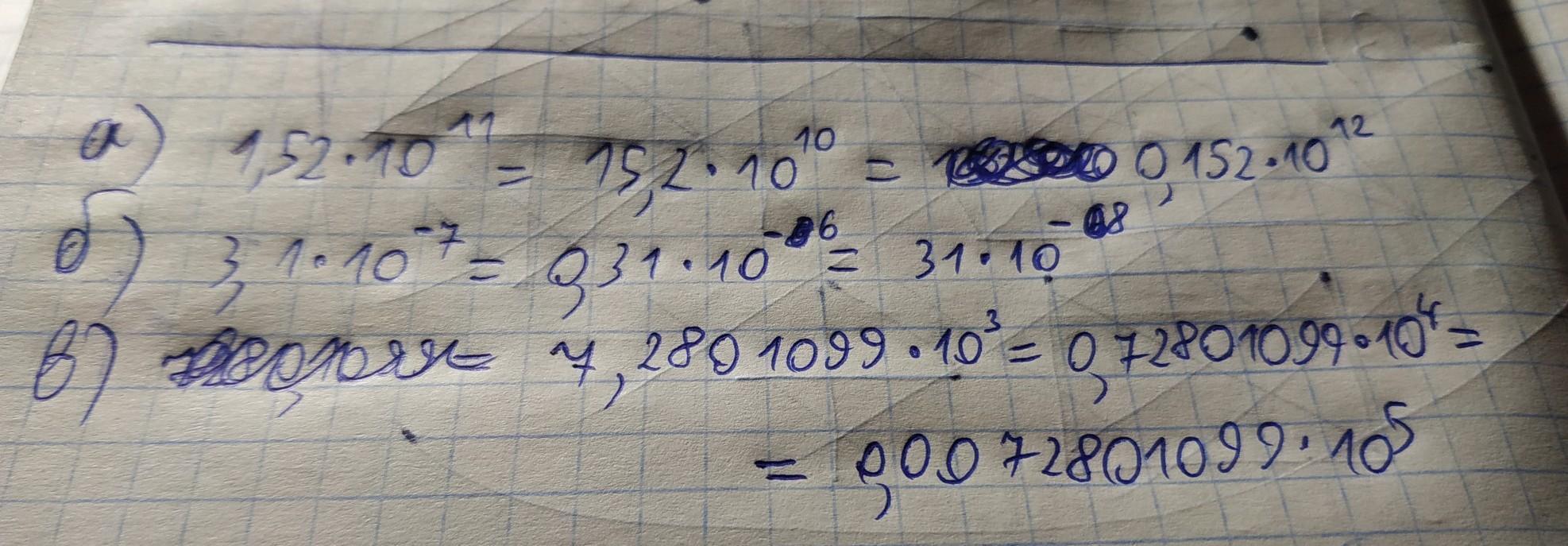 Запишите числа в экспоненциальной форме тремя различными вариантами: