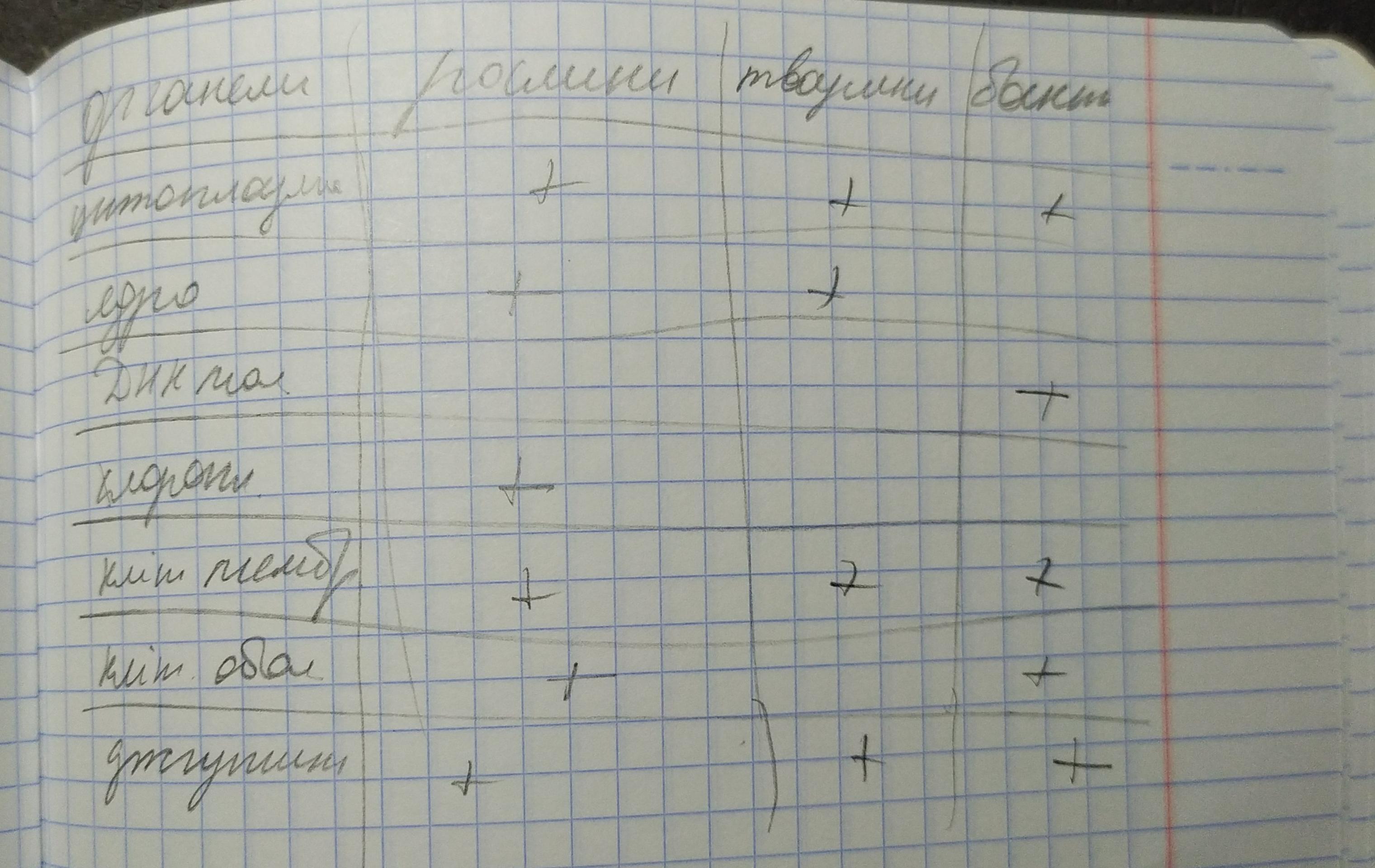 Завдання 2. Позначте знаком «+» органели, наявні в клітинах організмів.