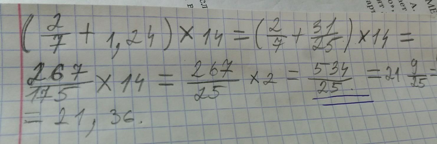 (14*2)/7 + 1,24*14 = 2*2 + 17,36 = 21,36