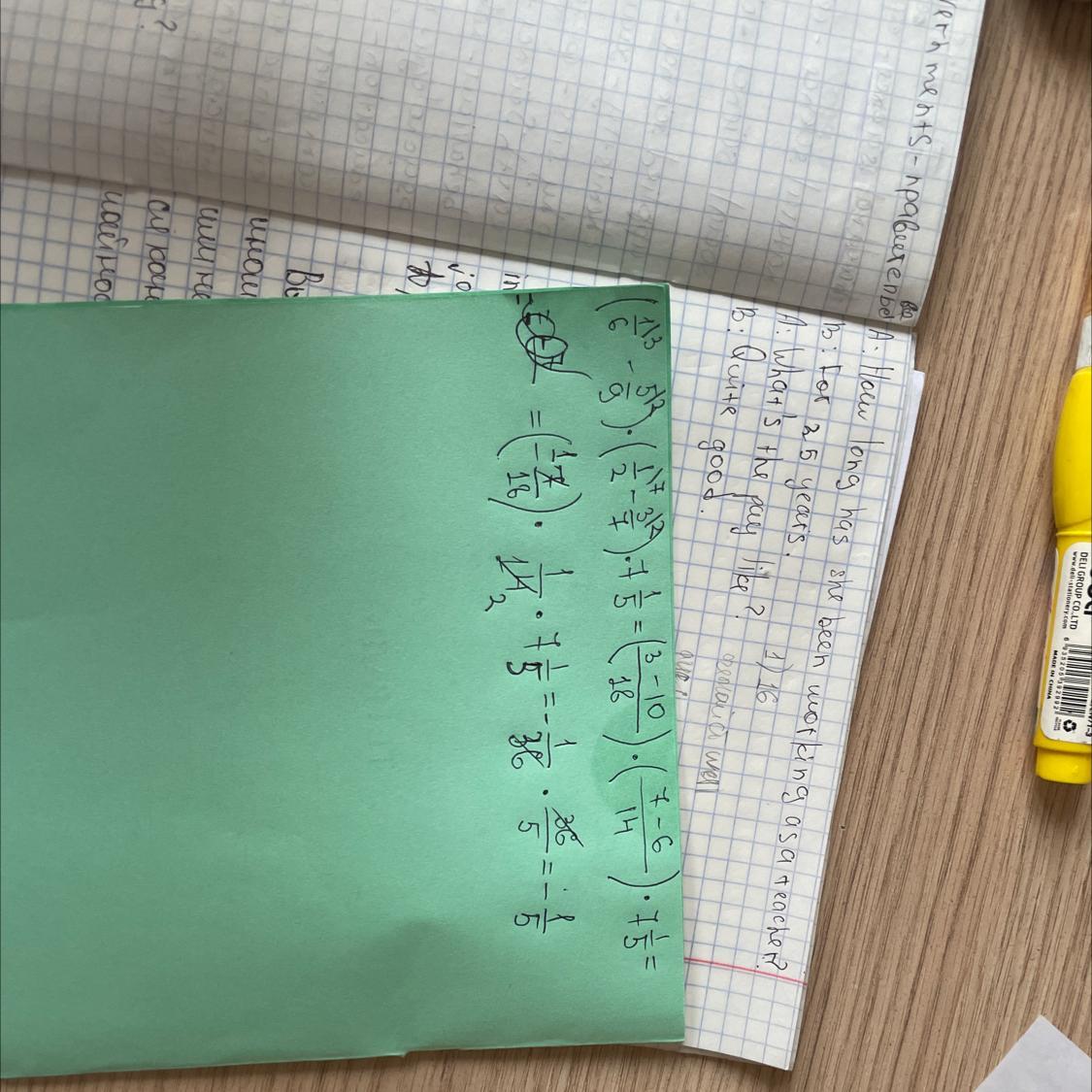 4) -1/36 * 7. 1/5 = -1/36 * 36/5 = -1/5