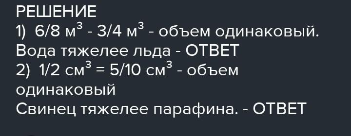 что тяжелее 6/8м а кубе воды или 3/8 и в кубе льда, 1/2 см в кубе парафина или 5/10 см в кубе свинца