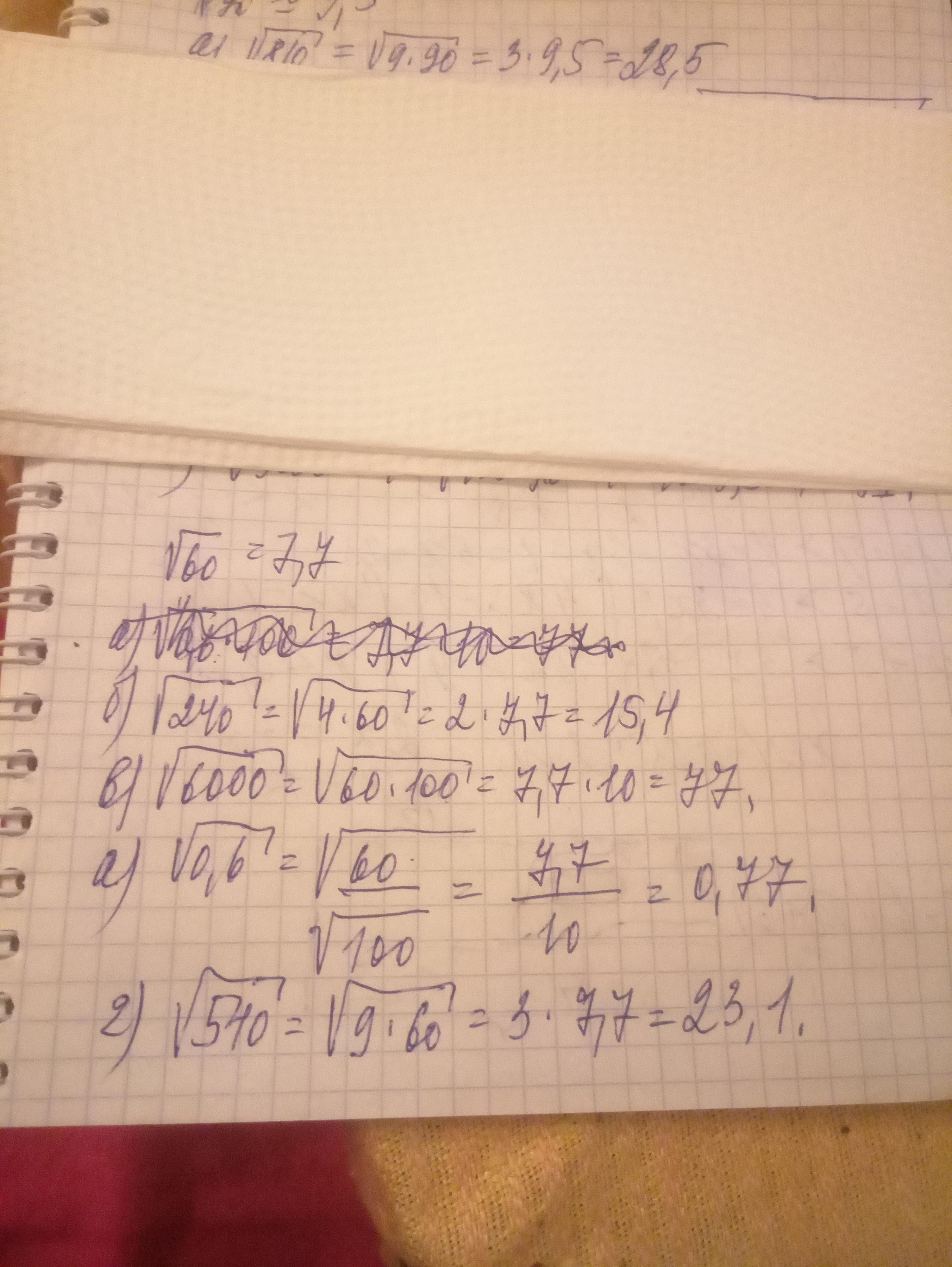Зная , что корень 60 примерно 7,7 найдите приближенное значение выражения а)корень 0,6 б) корень 240 в) корень 6000 г) корень 540