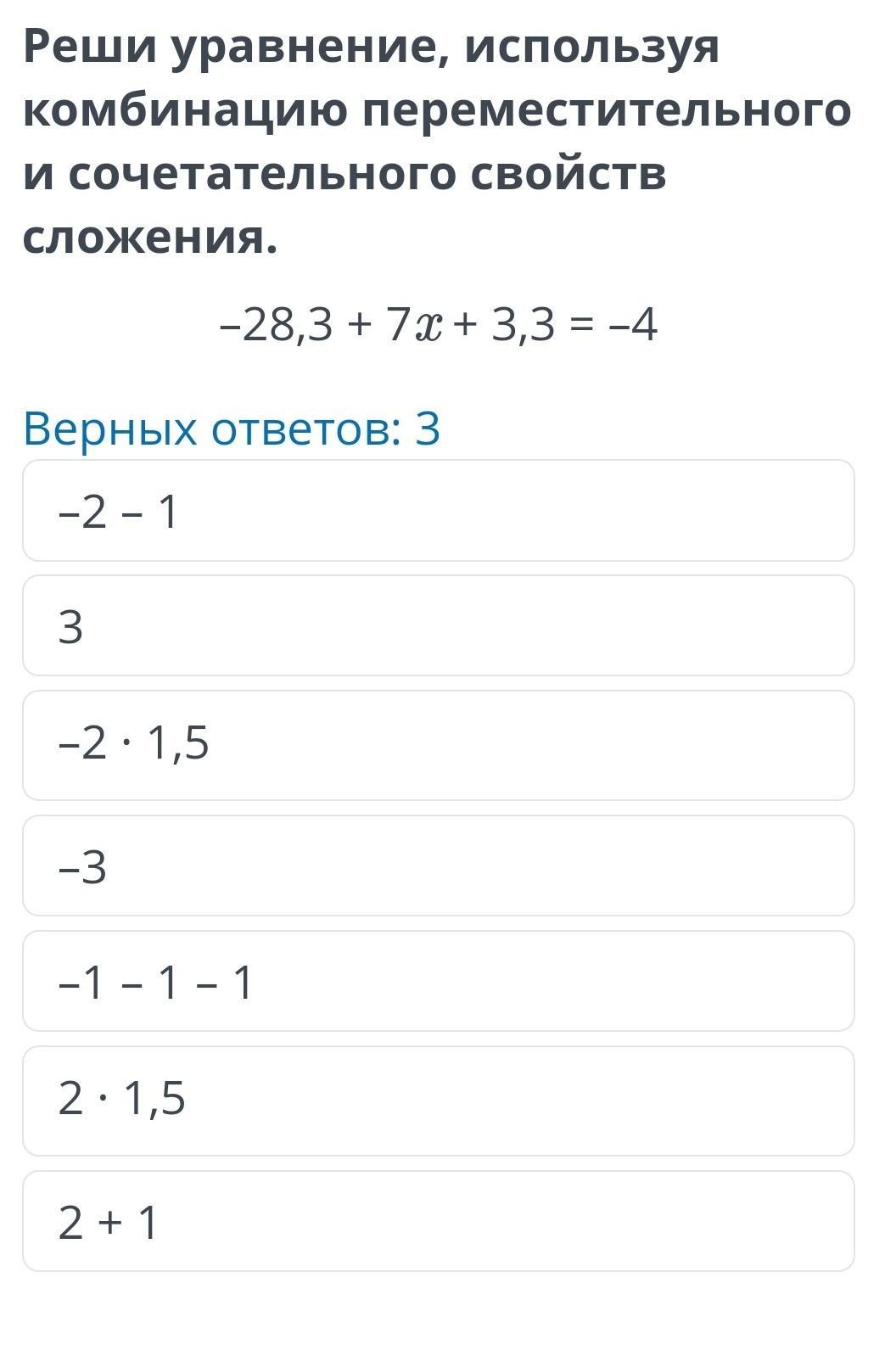 -28,3 + 7х + 3,3 = -4