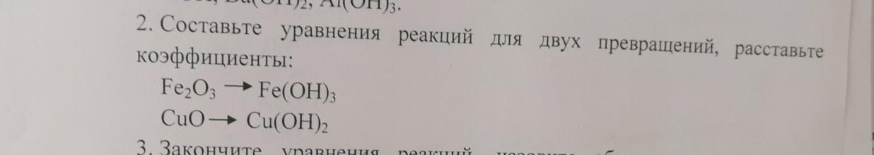 Ответ:Fe2O3 + 3 H2O = 2Fe(OH)3