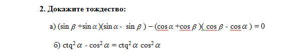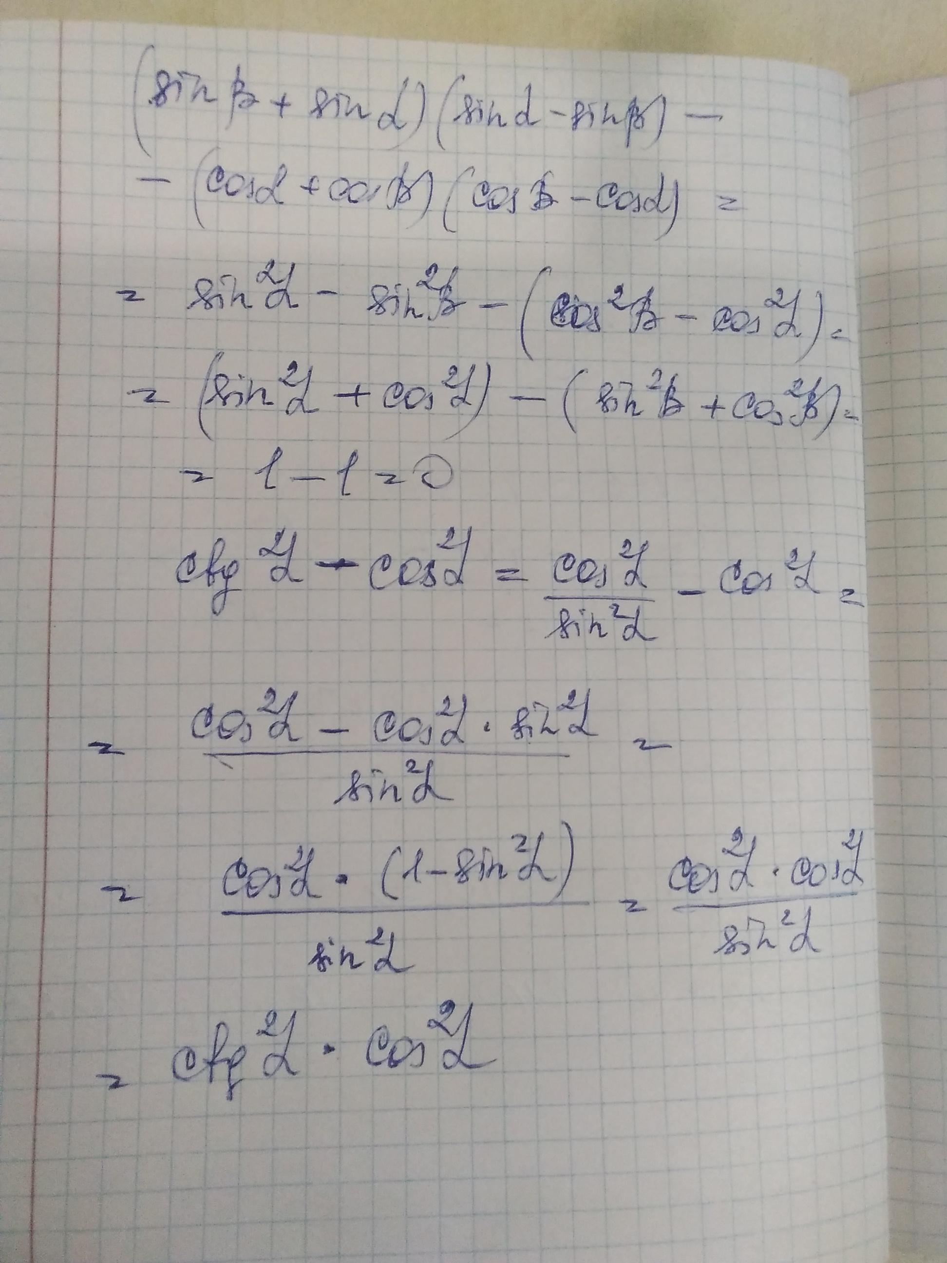 а) (sinB +sinA )(sinA - sinB ) – (cosA +cosB )( cosB - cosA ) = 0