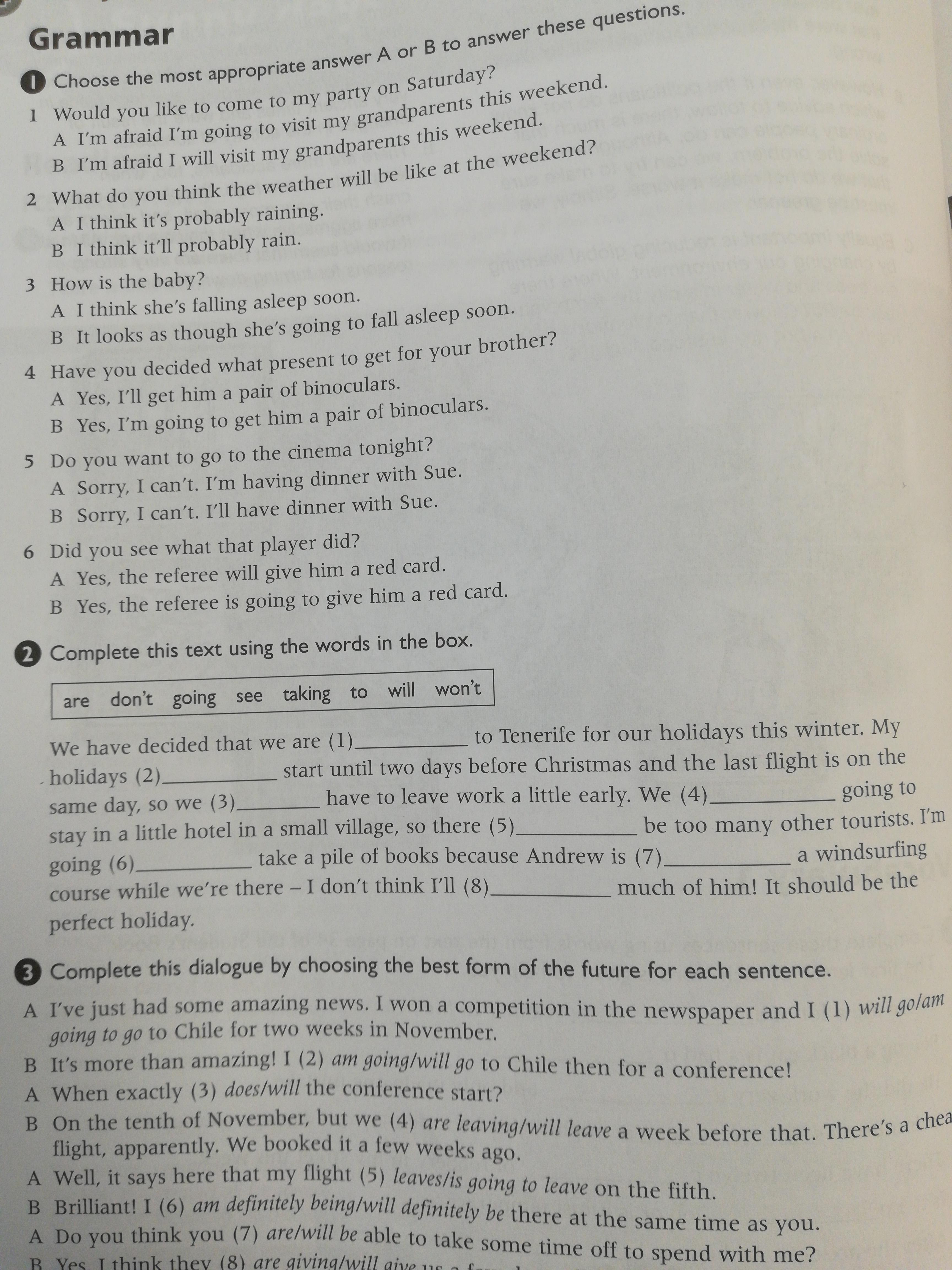 1. going; 2. don't 3. will 4. are; 5. won't; 6. to 7. taking 8. see