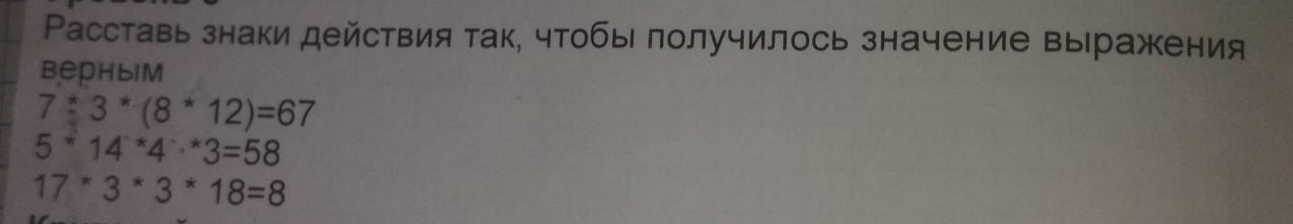 расставь знаки действия так, чтобы получилось значение выражения верным: