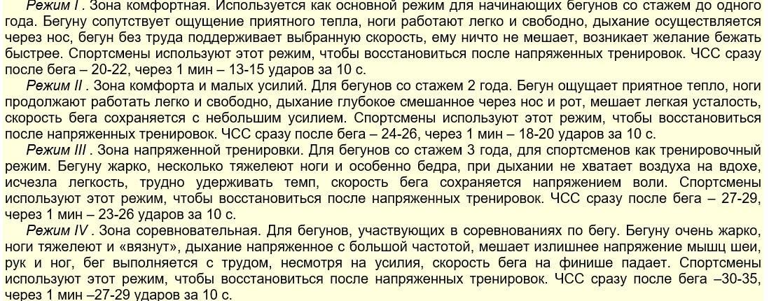 Охарактеризовать режимы интенсивности при беге по самочувствию и ЧСС