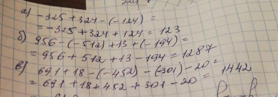 в) 691 + 18 - (-452) - (-301) - 20 =