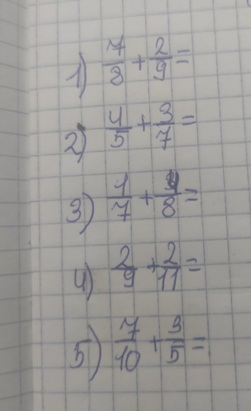 2)4/5 + 3/7=28/35 + 15/35=43/35= 1 целая 8/35