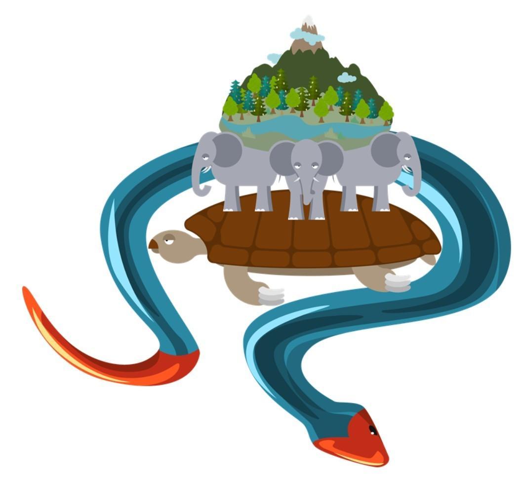 В Древней Индии считали то, что наша планета в виде полусферы держалась на четырёх слонах, слоны, в свою очередь - на черепахе, а черепаха - на змее.
