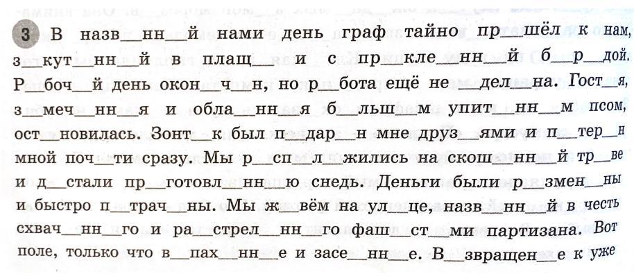 вставить пропущенные буквы, найти причастия, указать залог (действит/страдат) и время, выделить суффиксы причастий, указать форму (полная/краткая)