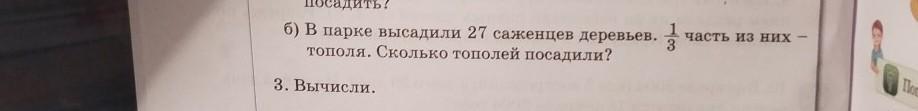 б) В парке высадили 27 саженцев деревьев. часть из них тополя. Сколько тополей посадили?