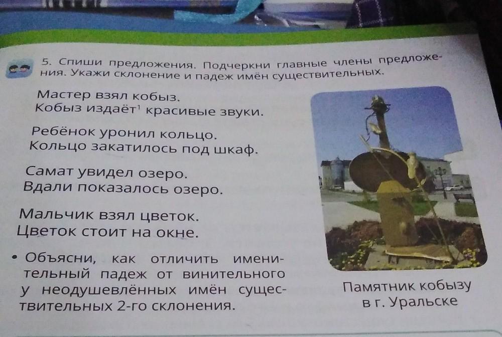 Мастер взял, кобыз издаёт,ребёнок уронил,кольцо закатилось,Самат увидел,озеро показалось,мальчик взял,цветок стоит