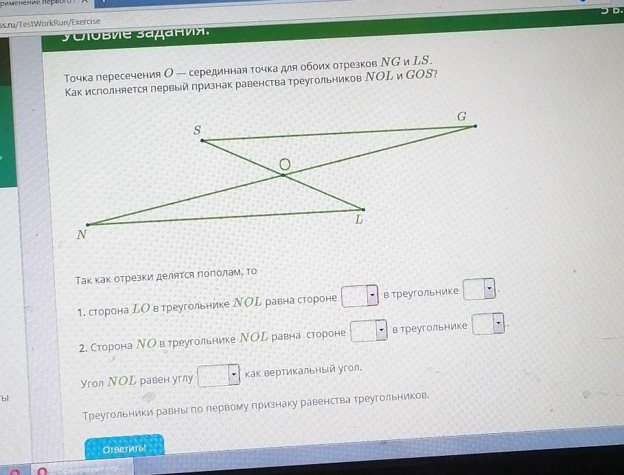1.Сторона LO в треугольнике NOL равна стороне SO в тругольнике SOG