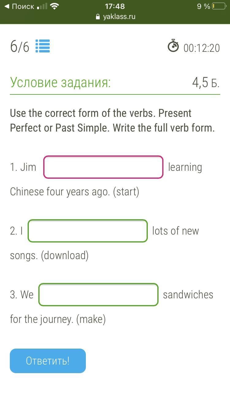 Чтобы сделать Past Simple или Present Perfect, нужно добавить в конце глагола -ed. Есть так же исключения.