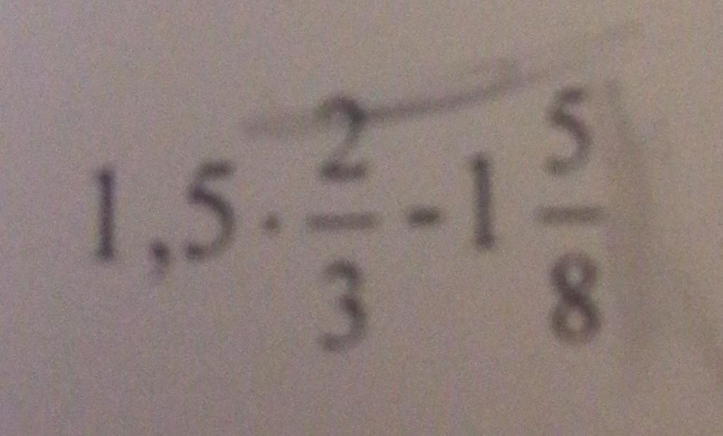 1 \frac{1}{2}  \times  \frac{2}{3}  - 1 \times \frac{5}{8}  = \\ 1) \frac{3}{2}  \times  \frac{2}{3}  = 1 \\ 2)1 - 1 \times \frac{5}{8}  =  -  \frac{5}{8}