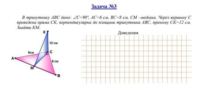 КМ=√(КС²+СМ²)=√(12²+5²)=√(144+25)=