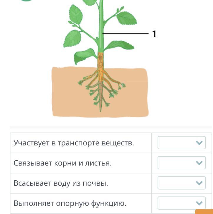 Рассмотри предложенный рисунок и определи верные и неверные утверждения о функциях стебля.