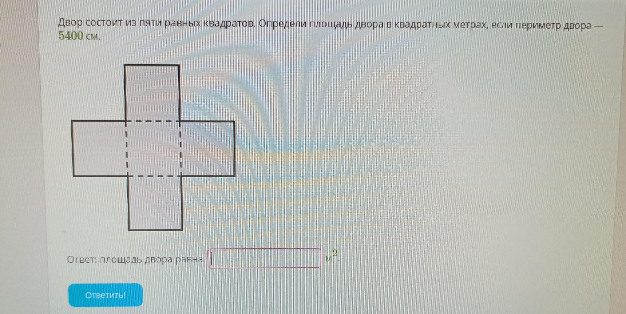 Площадь всего двора, т.е. пяти квадратов 5•202500=1012500см²