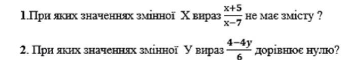 Объяснение:1) т.к. делить на нуль нельзя,то х-7≠0, х≠7---- выражение не имеет смысла при х=7.