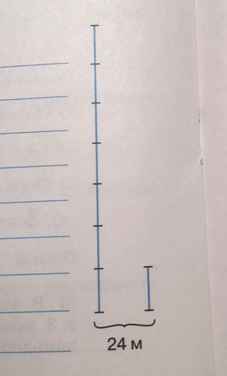 Вместе все отрезки составляют 24 м. То есть у нас получится 7 отрезков (слева) и один отрезок (справа) в сумме дают 24 м. 7+1=8, в общем у нас восемь отрезков.