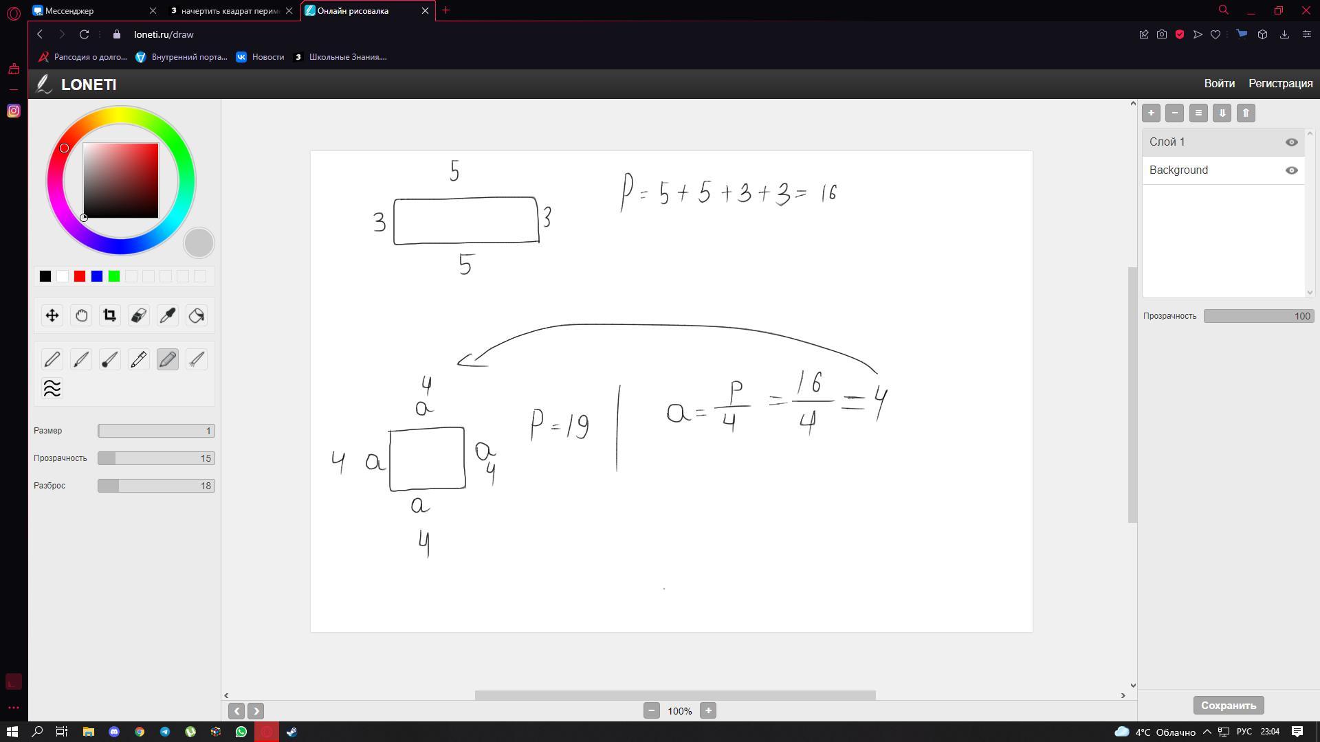следовательно нужно начертить квадрат со странами 4 и 4