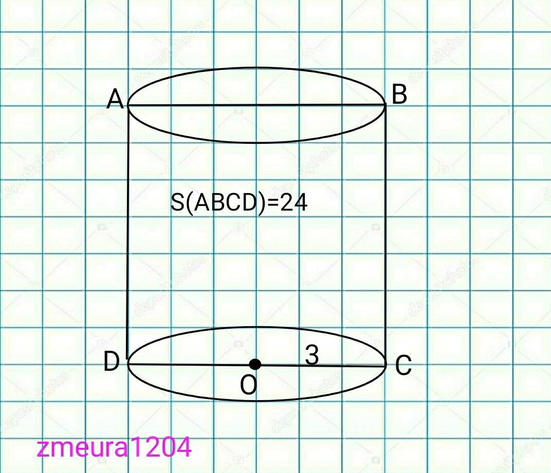 AD=S(ABCD)/DC=24/6=4см высота цилиндра.