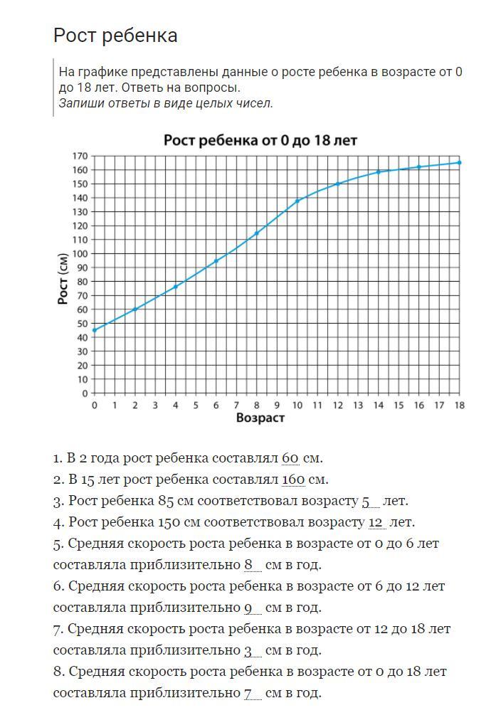 8. Средняя скорость роста ребенка в возрасте от 0 до 18 лет составляла приблизительно