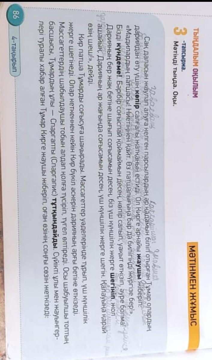 Тумар, собирающийся покорить Сакскую степь, услышал, что строят мост через реку. Он послал особого врага Киру? «Король Мади! Сдаться. Иди в свое королевство и прави им ». Подписывайтесь на нас! В любом случае, если хочешь драться, построи мост, не теряй времени, не беспокойся. Если хочешь сражаться по одну сторону от Дарьи, давай отступим к месту ревности. Вы сами решаете, чего хотите ». Король Кир вызывает Тумара на битву. Масагеты выполняют свои обещания и отступают на три угла. Когда они ушли, Кир повел всю свою армию через реку. Он обманывает группу массажисток и ловит их. Лидер этой атакующей группы захватывает Спаргаписа (Spargapis), сына Тумара. Узнав о своем любимом сыне и воинах, Тумар послал врага к Киру и передал ему свои последние слова: