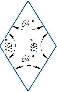 угол а = 64° , значит противоположный угол ромба тоже 64°