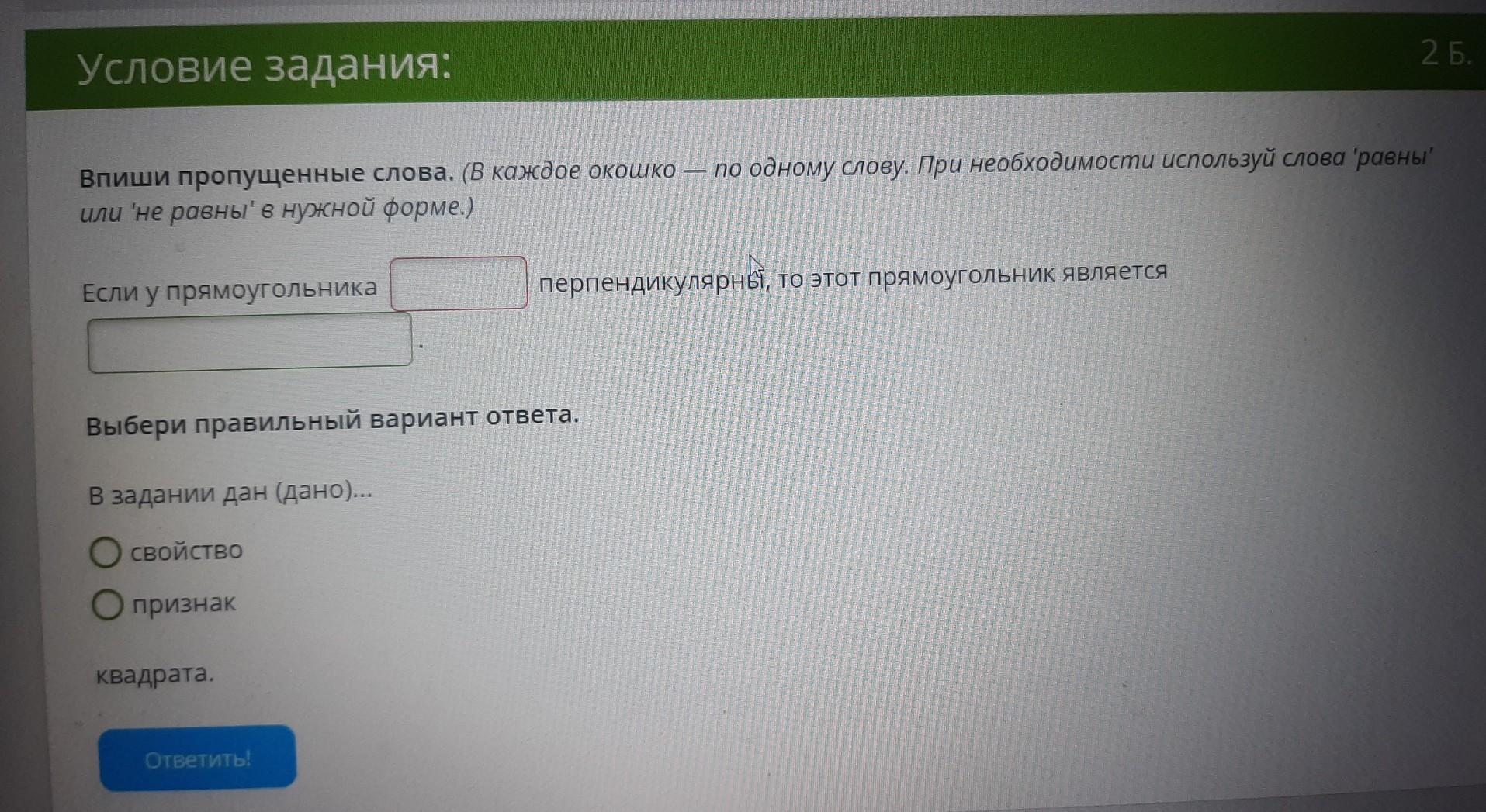 Если у прямоугольника диагонали перпендикулярны, то этот прямоугольник является квадратом
