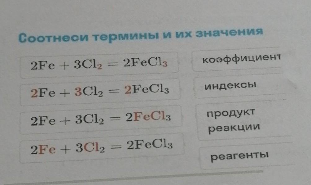 1. 2Fe+3Cl2=2FeCl3 - индексы