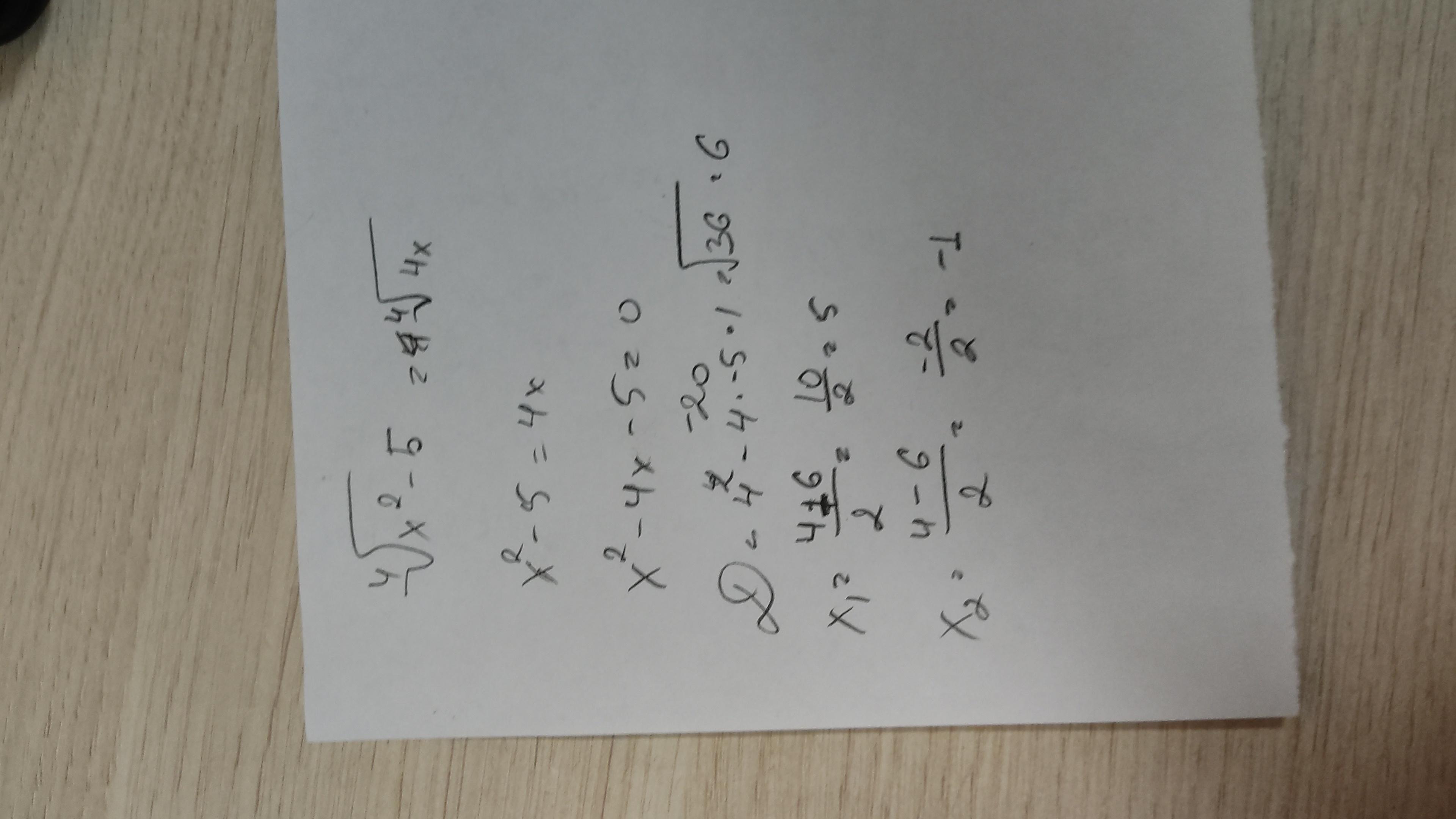 ( показатель корня )4√x^2 - 5 ( x^2-5 под этим корнем )= 4(показатель корня)√4x . Помогите пожалуйста решить уравнение .