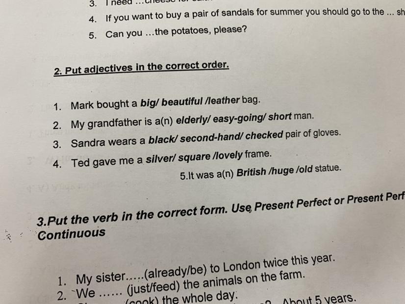 3 Sandra wears a second-hand, black, checked pair of gloves.