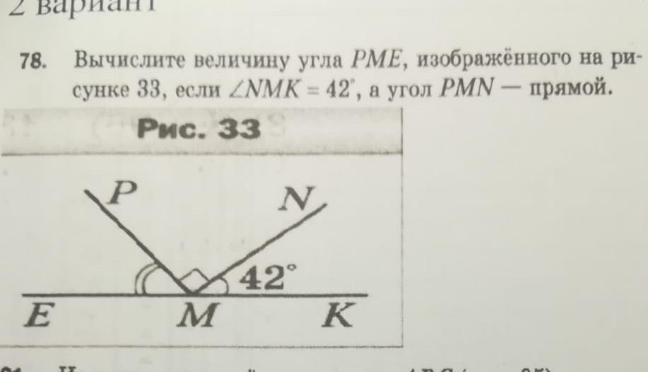 Сумма углов PMN и NMK = 90 + 42 = 132 градуса.