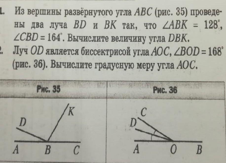 Луч BD делит угол DВС на два угла - DВК и КВС, что в сумме равно 164˚. Найдем угол DВК:
