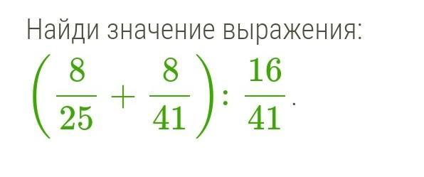 (8/25 + 8/41) : 16/41=> Раскроем скобки и сократим:
