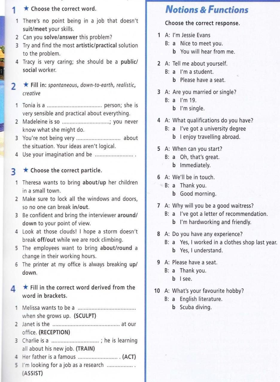 1) meet 2) solve 3) practical 4) social