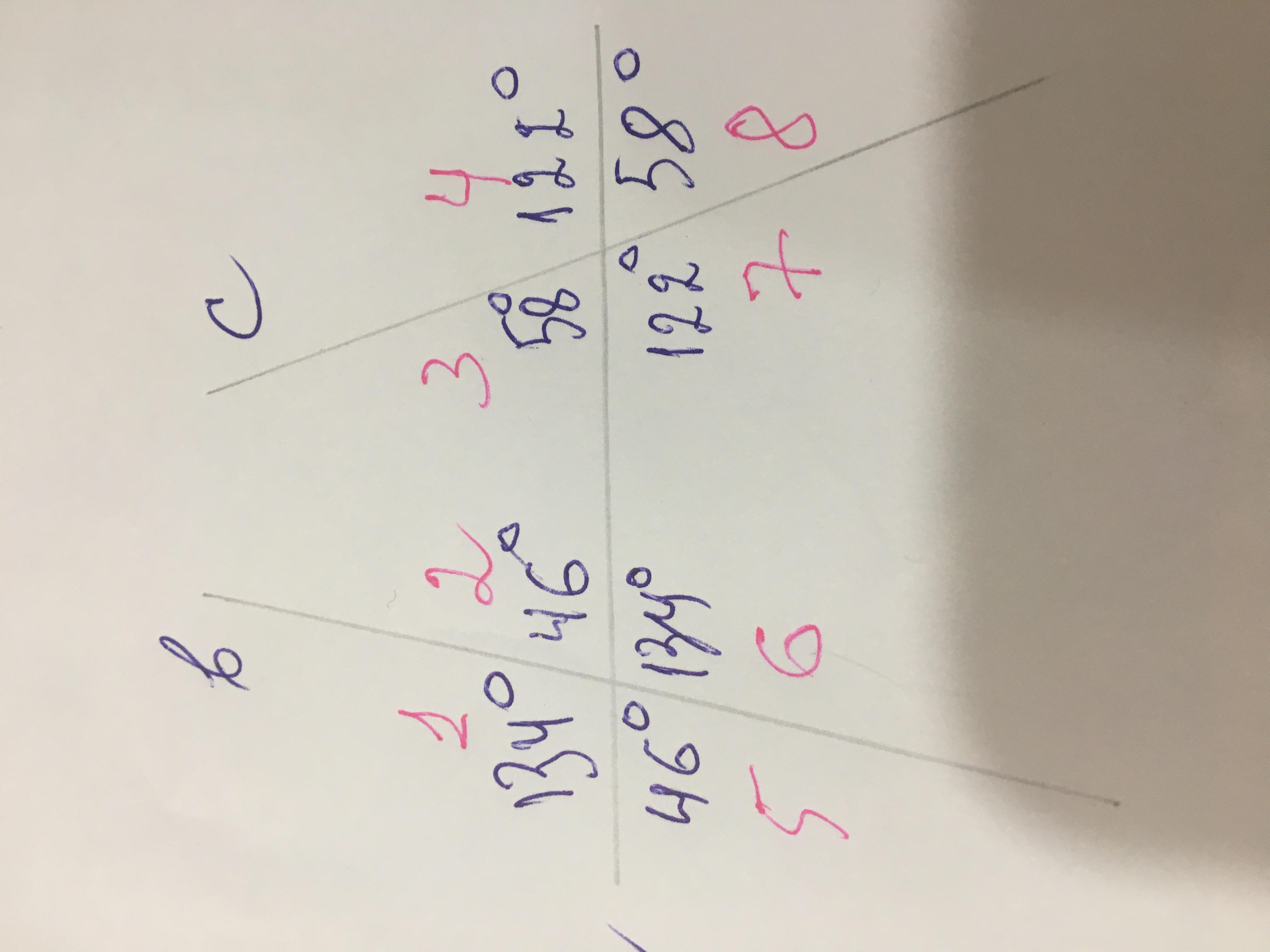 А вычисляются они,как углы при пересечении двух прямых в и а,а потом с и а,т е как вертикальные углы